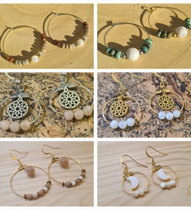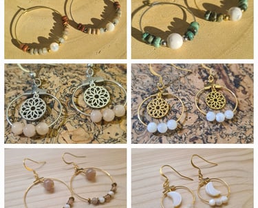 Comme pour les plumes, chaque pierre est différente, j'aime trouver celles qui sauront se marier et créer une paire de boucles harmonieuses