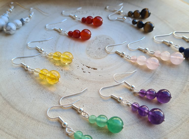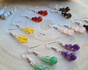 Comme pour les plumes, chaque pierre est différente, j'aime trouver celles qui sauront se marier et créer une paire de boucles harmonieuses